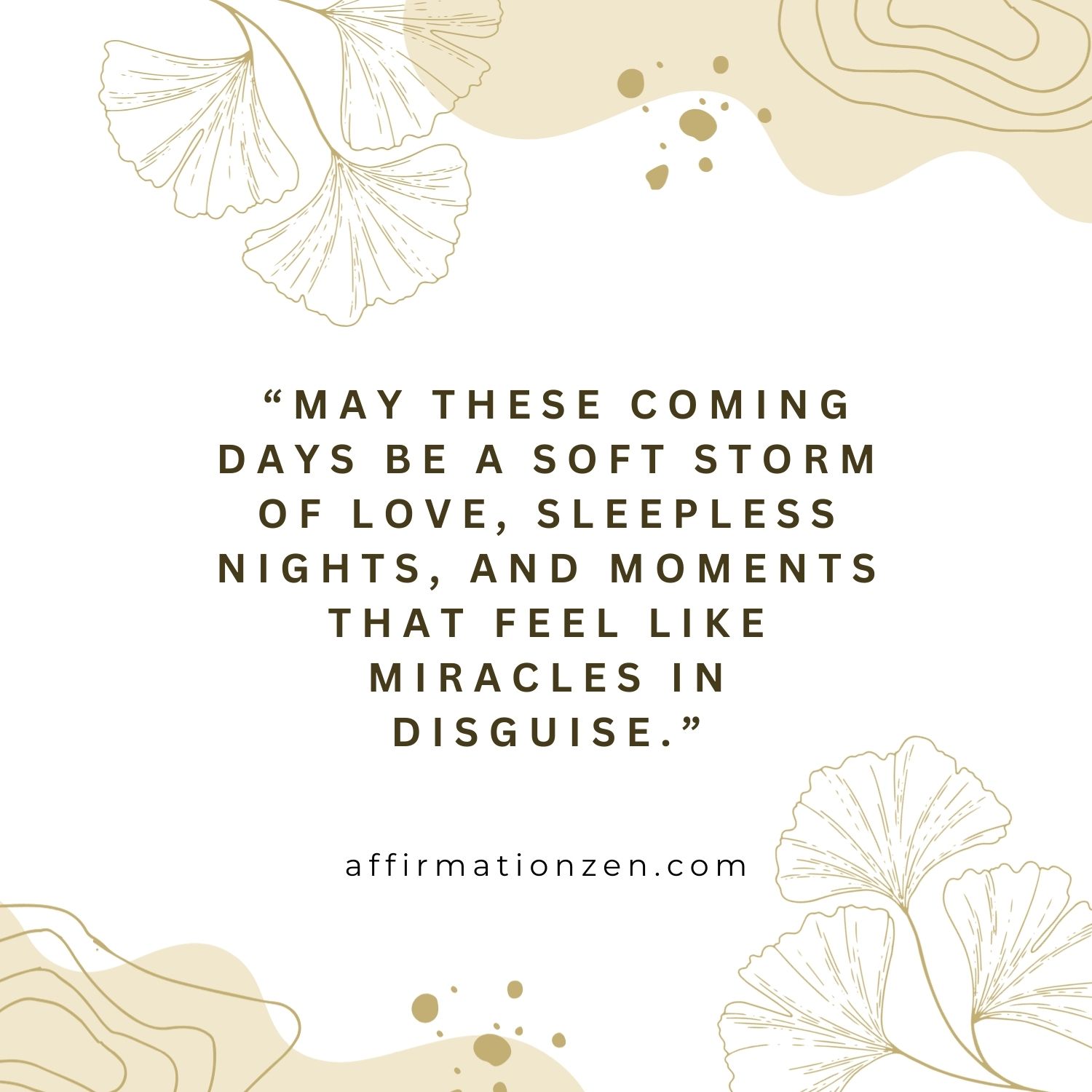 ◼ “May these coming days be a soft storm of love, sleepless nights, and moments that feel like miracles in disguise.”