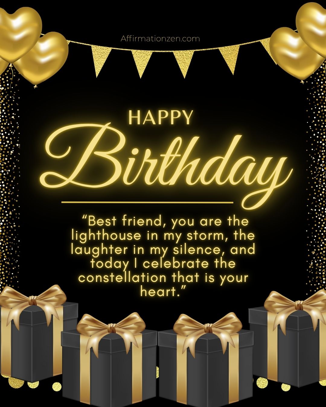 ◼ “Best friend, you are the lighthouse in my storm, the laughter in my silence, and today I celebrate the constellation that is your heart.”