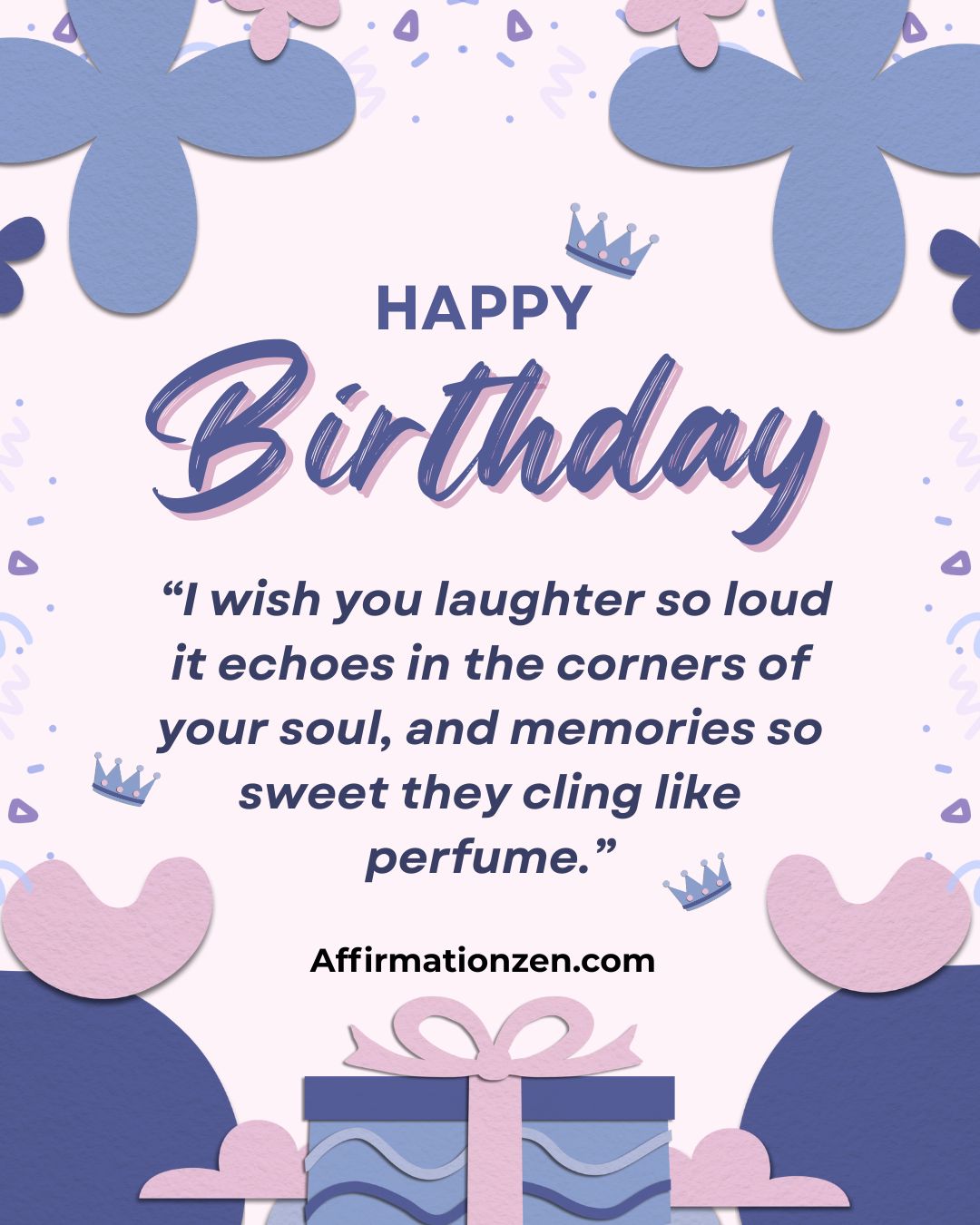 ◼ “I wish you laughter so loud it echoes in the corners of your soul, and memories so sweet they cling like perfume.”