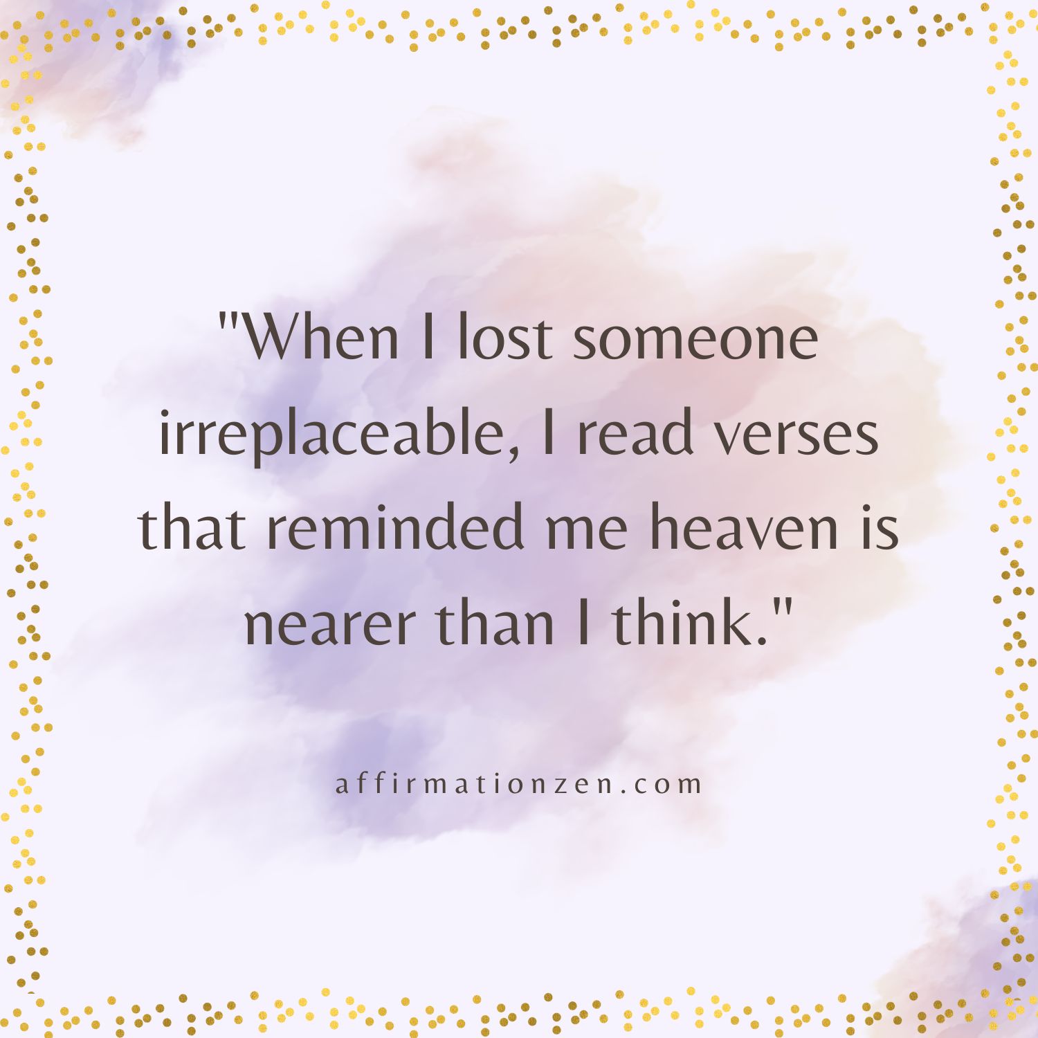 ◼ “When I lost someone irreplaceable, I read verses that reminded me heaven is nearer than I think.”