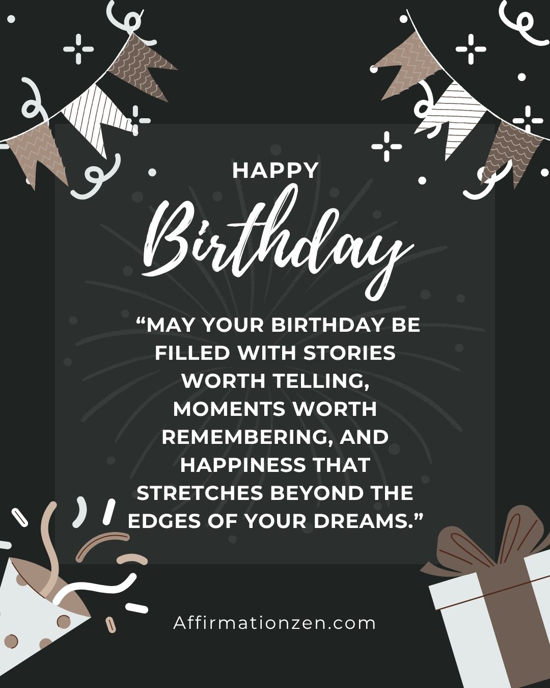 ◼ “May your birthday be filled with stories worth telling, moments worth remembering, and happiness that stretches beyond the edges of your dreams.”