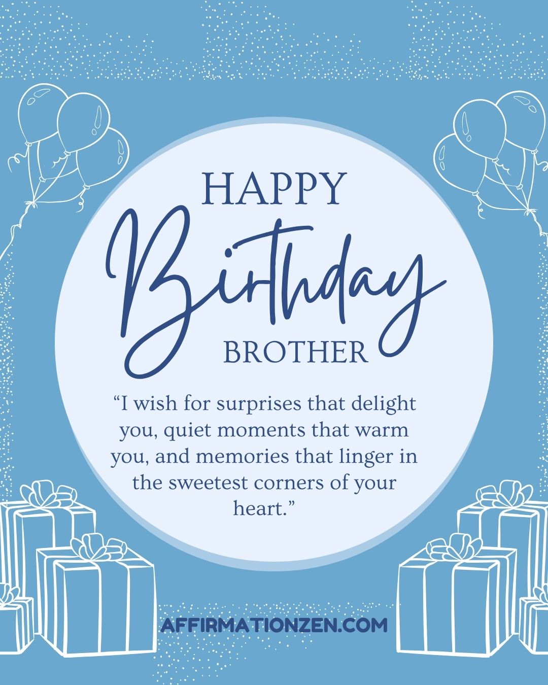 ◼ “Happy Birthday, brother. I wish for surprises that delight you, quiet moments that warm you, and memories that linger in the sweetest corners of your heart.”