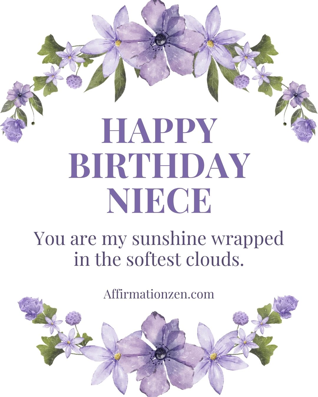 ◼ “Niece, may your birthday be a reflection of the love, kindness, and happiness you bring to everyone around you. You are treasured more than words can express.”