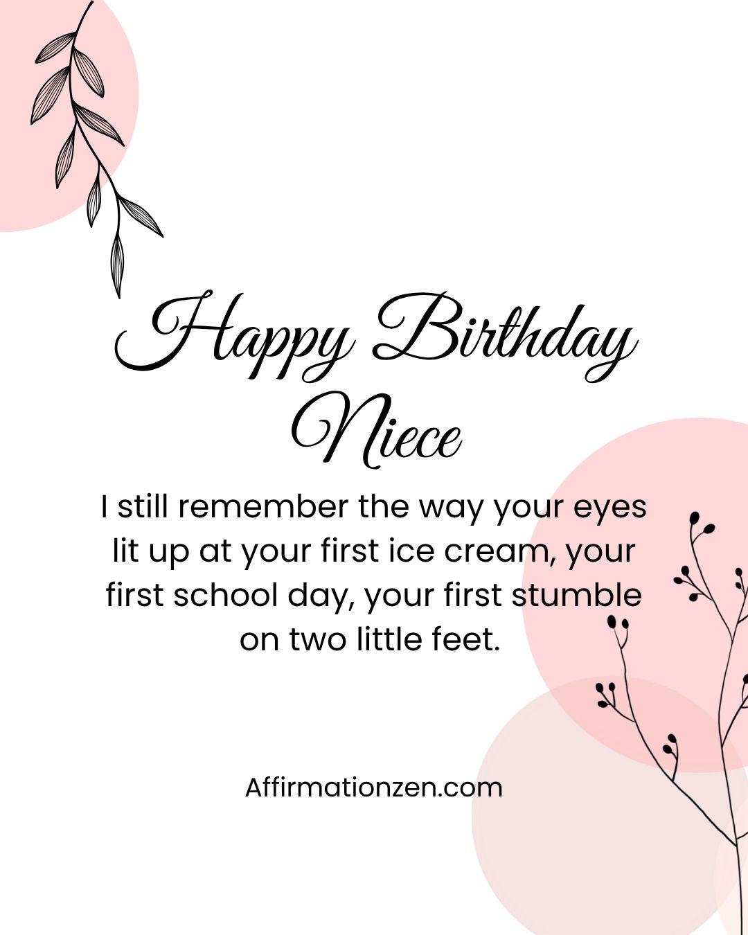 ◼ “From your first steps to today, every memory with you is precious. May this birthday bring love, joy, and endless smiles, because you deserve nothing less, my sweet niece.”
