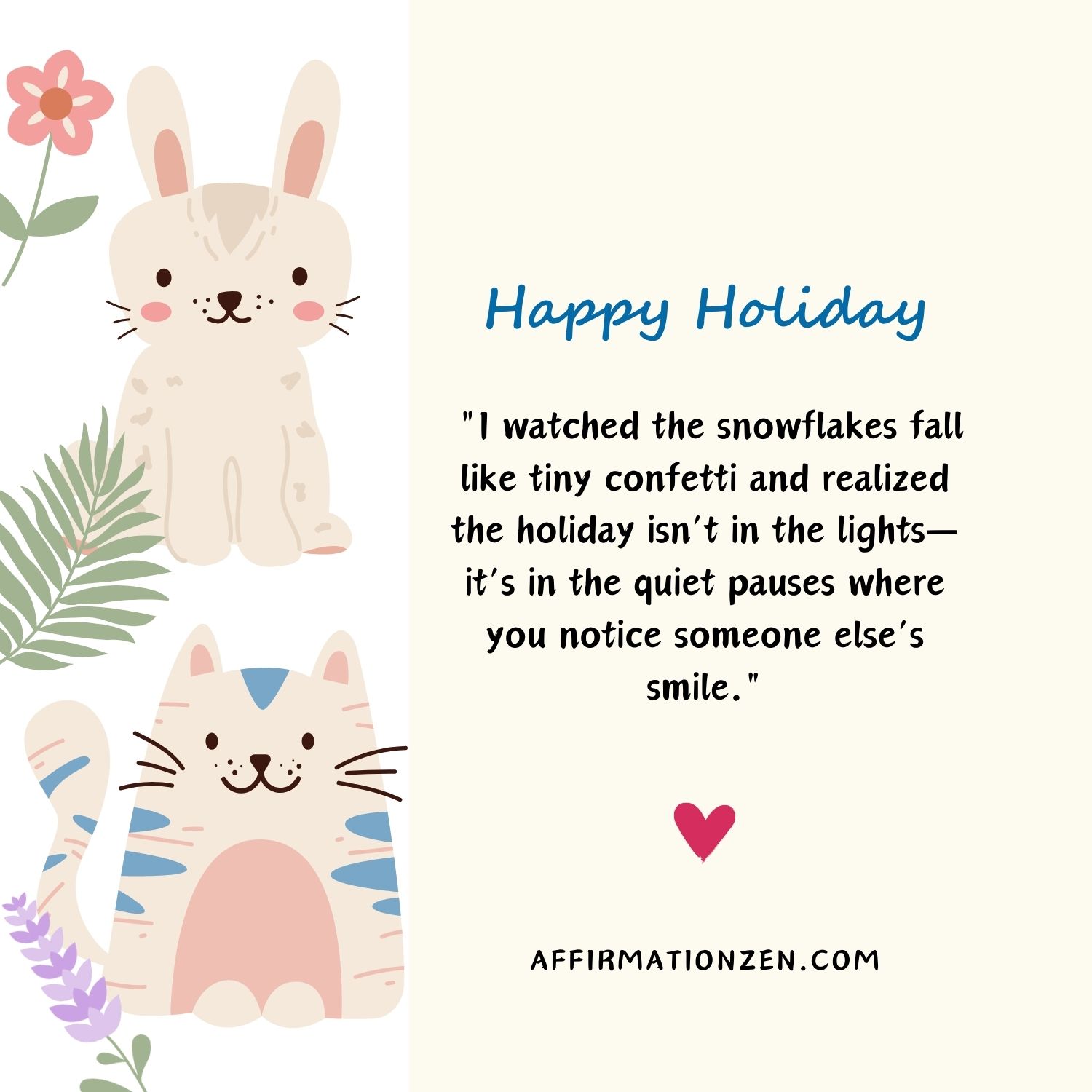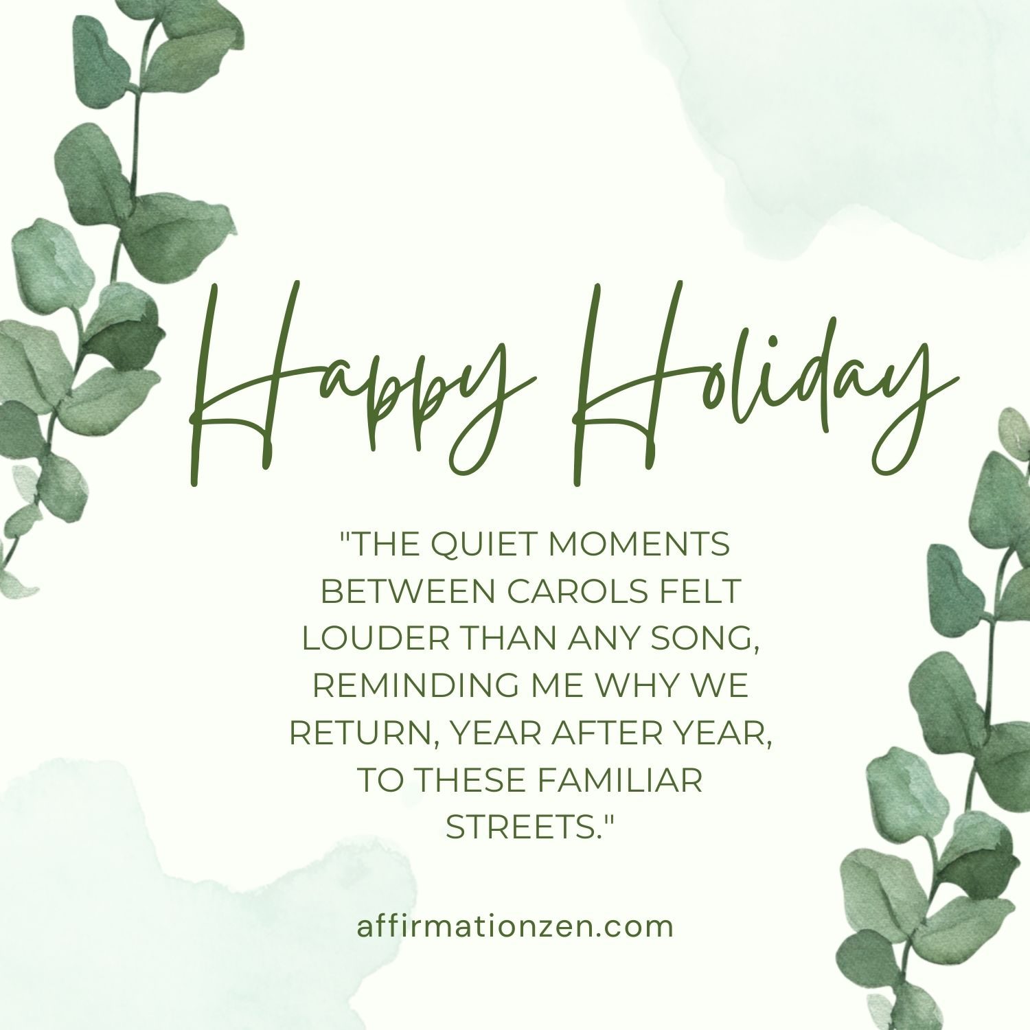 - “The true spirit of the holidays lies in the moments of stillness, where we reconnect with ourselves and each other.”