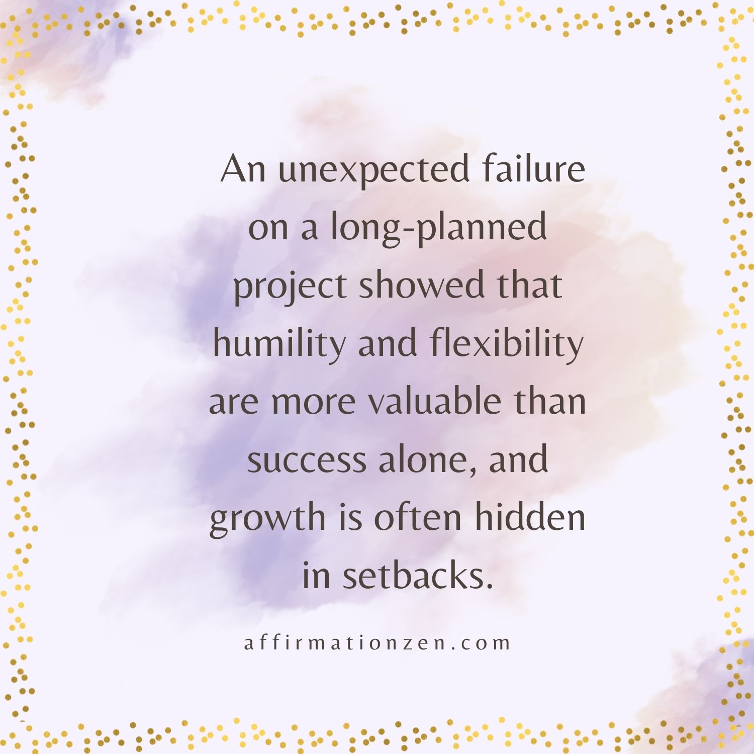 ◼ An unexpected failure on a long-planned project showed that humility and flexibility are more valuable than success alone, and growth is often hidden in setbacks.