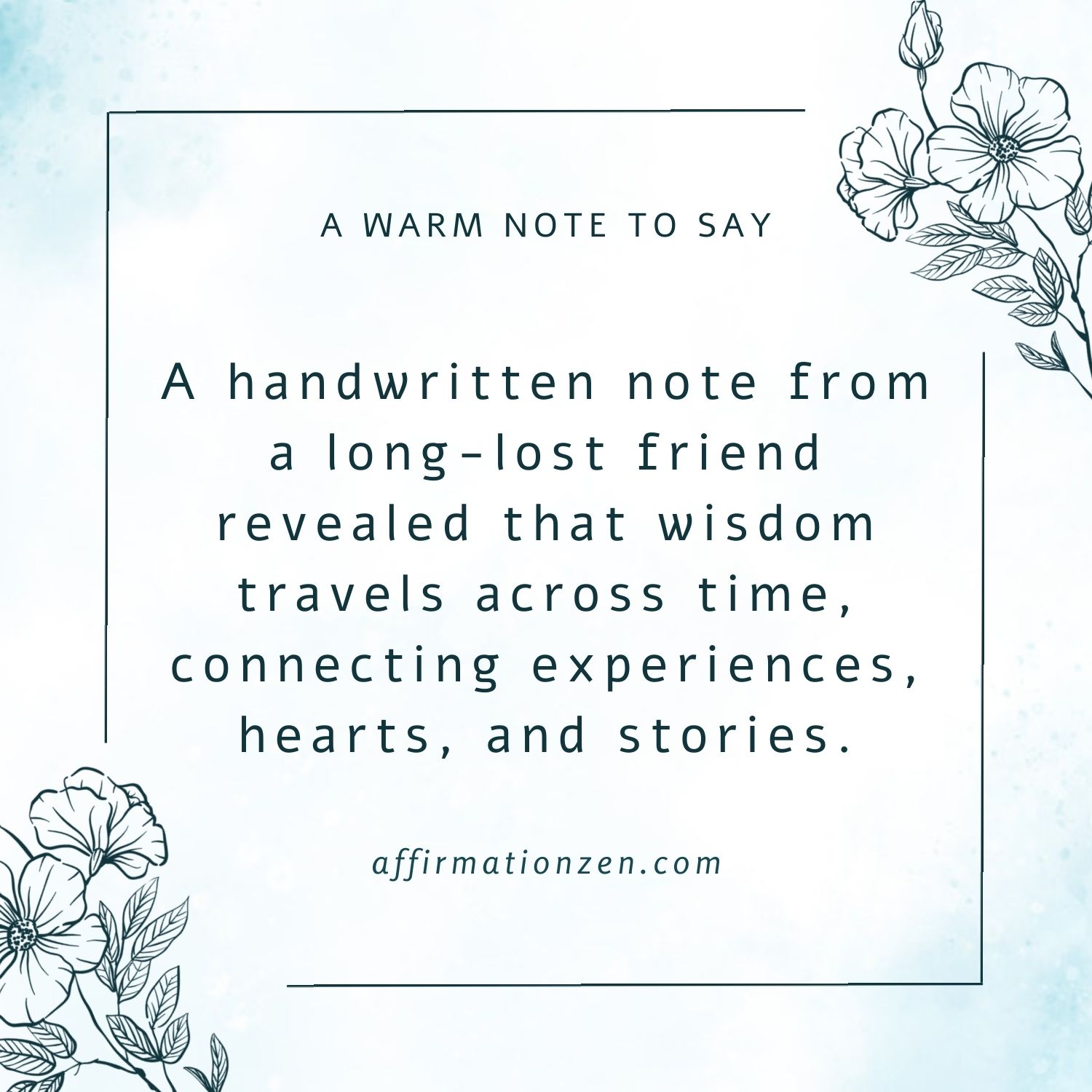 ◼ A handwritten note from a long-lost friend revealed that wisdom travels across time, connecting experiences, hearts, and stories.
