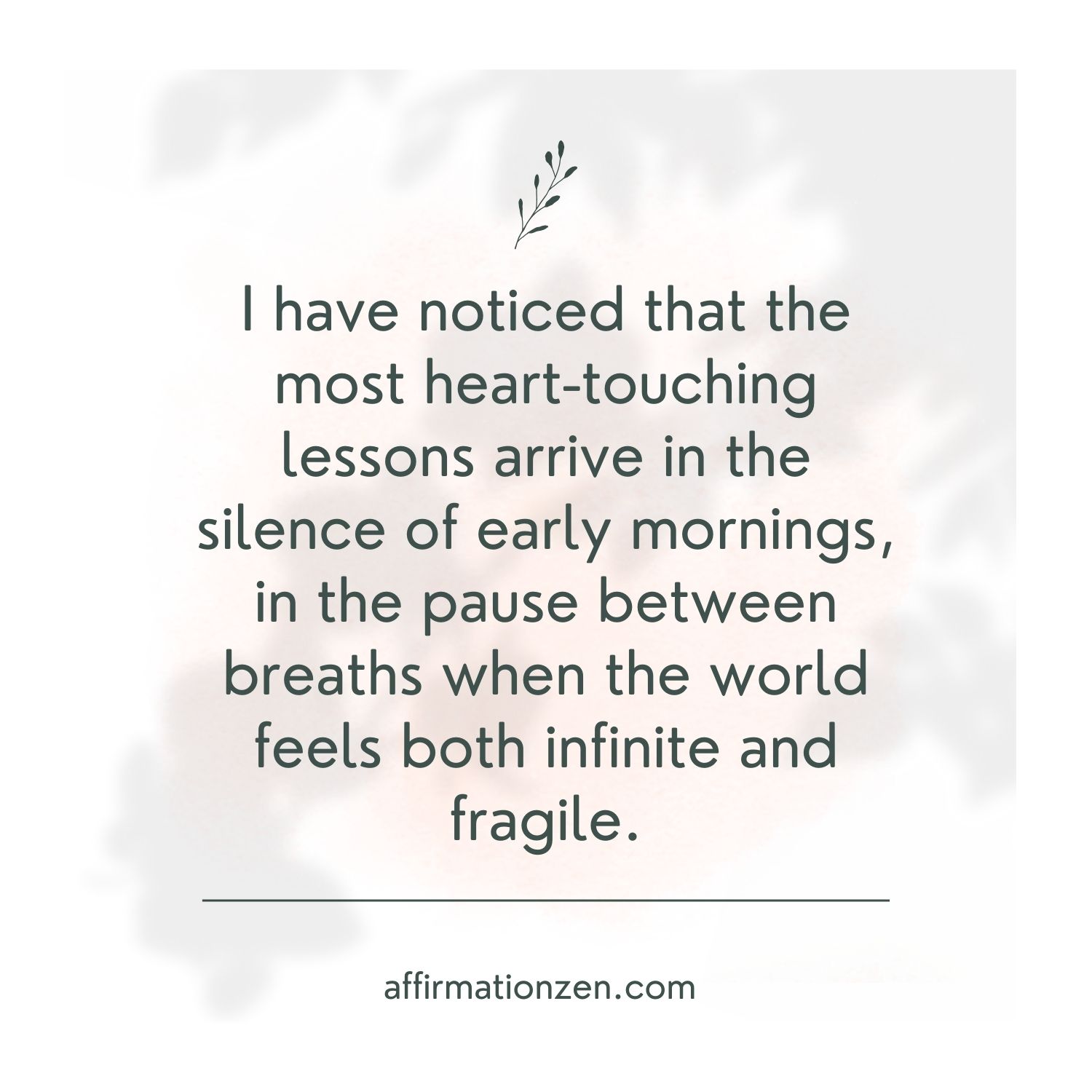 ◼ I have noticed that the most heart-touching lessons arrive in the silence of early mornings, in the pause between breaths when the world feels both infinite and fragile.
