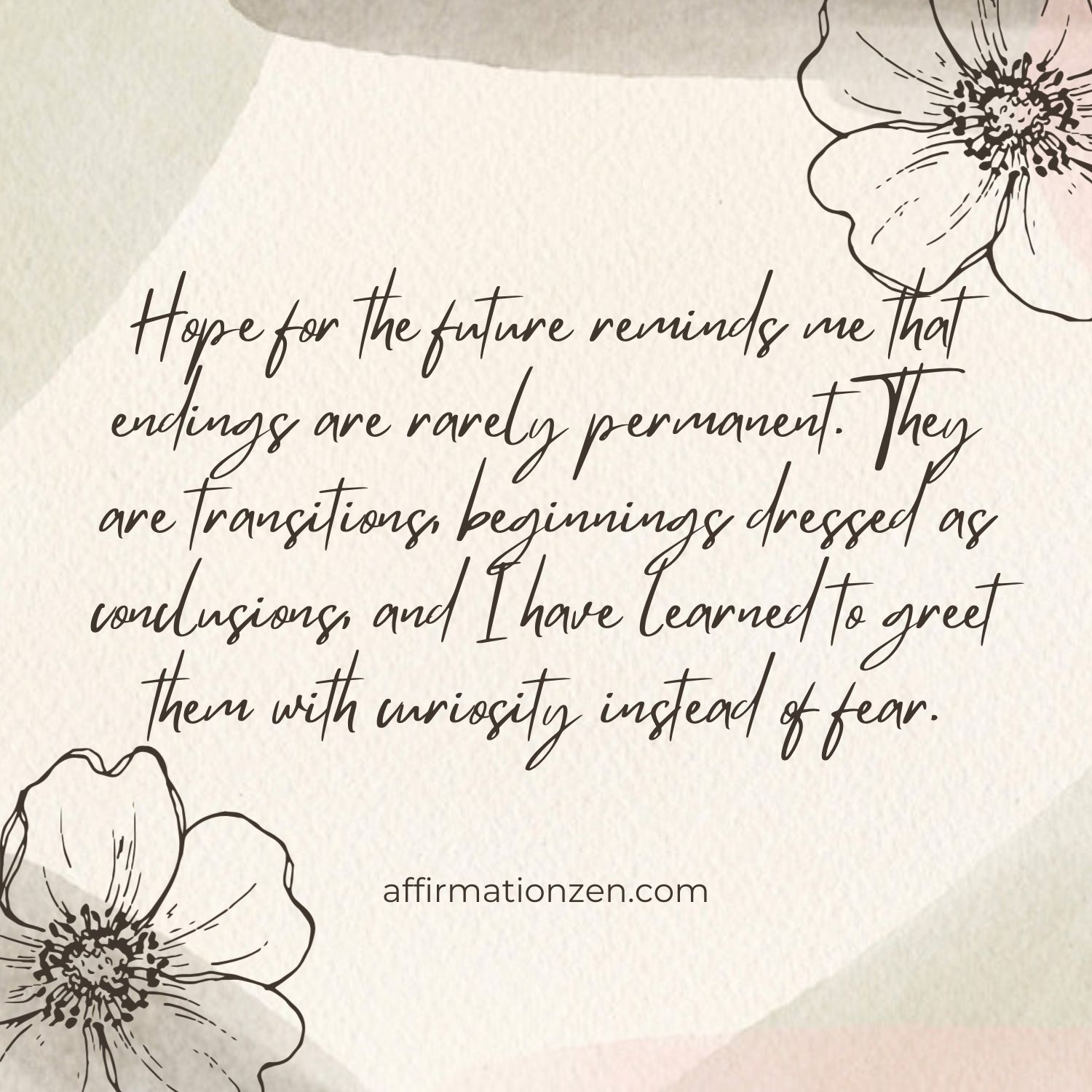 ◼ Hope for the future reminds me that endings are rarely permanent. They are transitions, beginnings dressed as conclusions, and I have learned to greet them with curiosity instead of fear.
