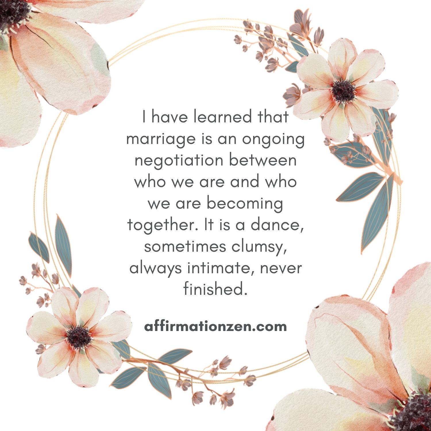 ◼ I have learned that marriage is an ongoing negotiation between who we are and who we are becoming together. It is a dance, sometimes clumsy, always intimate, never finished.
