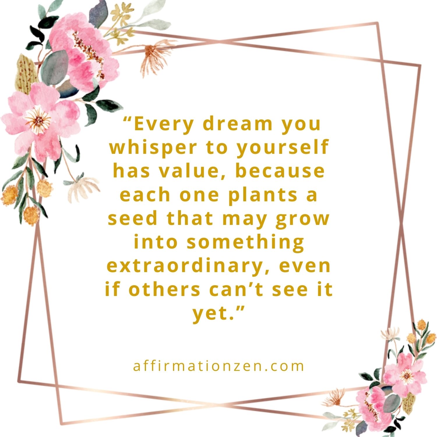 ◼ “Every dream you whisper to yourself has value, because each one plants a seed that may grow into something extraordinary, even if others can’t see it yet.”